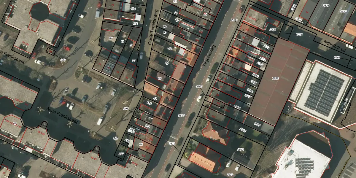 Het perceel waarop Tegelseweg 112 staat heeft een oppervlakte van 188 m². Dit is een middelgroot perceel. De perceeloppervlakte wordt geregistreerd door het Kadaster. Gedetailleerde informatie over de maten van dit perceel kunt u vinden in het rapport Kadastrale kaart met maatvoering van Tegelseweg 112.