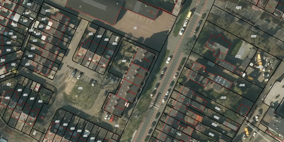 Het perceel waarop Tegelseweg 154 staat heeft een oppervlakte van 1011 m². Dit is een zeer groot perceel. De perceeloppervlakte wordt geregistreerd door het Kadaster. Gedetailleerde informatie over de maten van dit perceel kunt u vinden in het rapport Kadastrale kaart met maatvoering van Tegelseweg 154.
