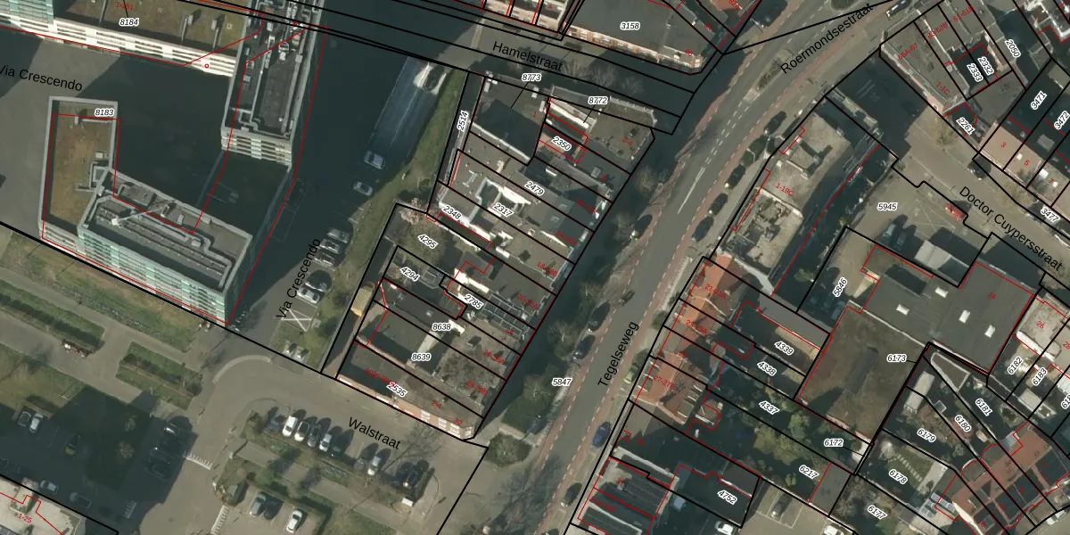 Tegelseweg 18-A is gelegen op kadastraal perceel VLO00H2348. Deze kadastrale aanduiding is uniek en wordt gebruikt door het Kadaster om eigendomsrechten en andere zakelijke rechten vast te leggen. Het perceel maakt onderdeel uit van de kadastrale gemeente Venlo.