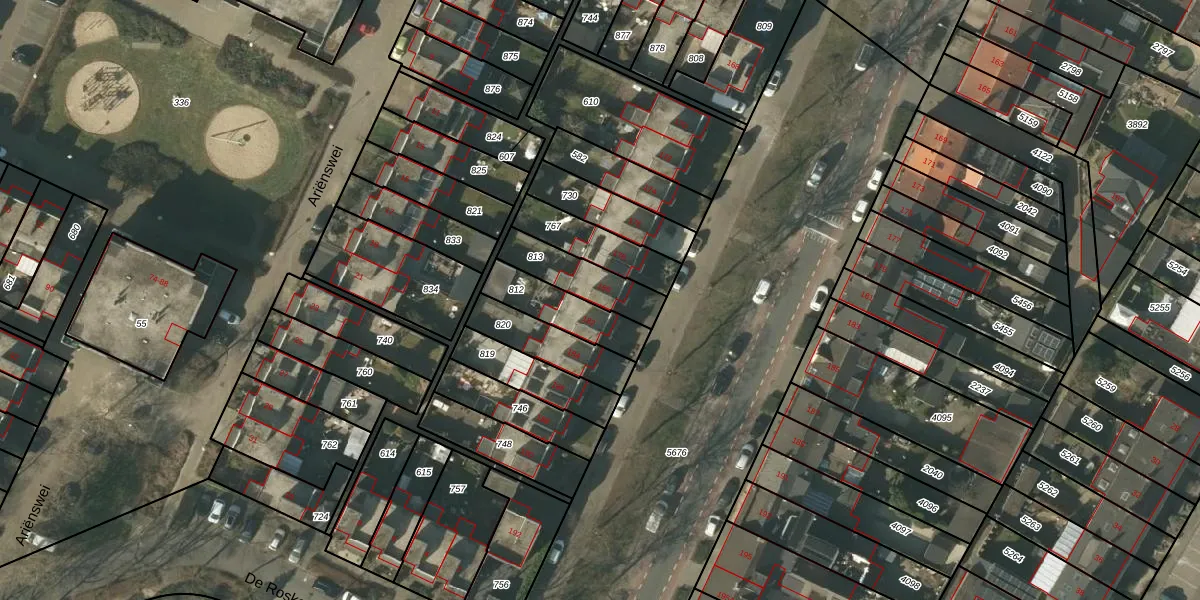 Gebruik de zoekbalk of klik op een perceel voor informatie over de adressen binnen dit perceel.