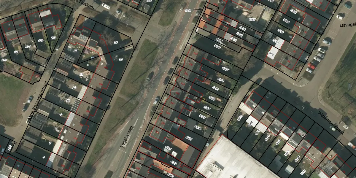 Het perceel waarop Tegelseweg 215 staat heeft een oppervlakte van 204 m². Dit is een middelgroot perceel. De perceeloppervlakte wordt geregistreerd door het Kadaster. Gedetailleerde informatie over de maten van dit perceel kunt u vinden in het rapport Kadastrale kaart met maatvoering van Tegelseweg 215.