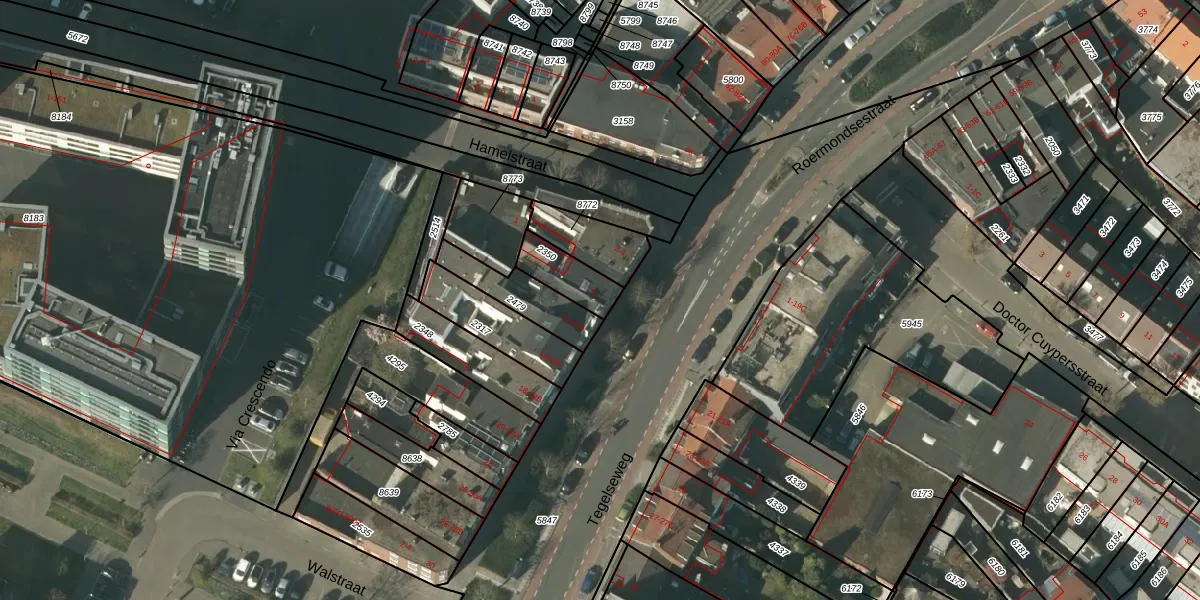 Tegelseweg 6 is gelegen op kadastraal perceel VLO00H2350. Deze kadastrale aanduiding is uniek en wordt gebruikt door het Kadaster om eigendomsrechten en andere zakelijke rechten vast te leggen. Het perceel maakt onderdeel uit van de kadastrale gemeente Venlo.