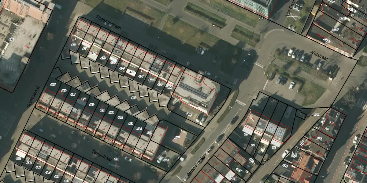 Theemsstraat 5 is gelegen op kadastraal perceel VLO00T385. Deze kadastrale aanduiding is uniek en wordt gebruikt door het Kadaster om eigendomsrechten en andere zakelijke rechten vast te leggen. Het perceel maakt onderdeel uit van de kadastrale gemeente Venlo.