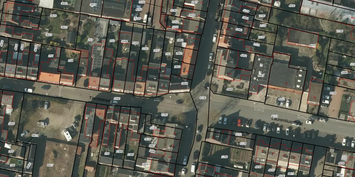 Het perceel waarop Tiendstraat 2 staat heeft een oppervlakte van 103 m². Dit is een middelgroot perceel. De perceeloppervlakte wordt geregistreerd door het Kadaster. Gedetailleerde informatie over de maten van dit perceel kunt u vinden in het rapport Kadastrale kaart met maatvoering van Tiendstraat 2.