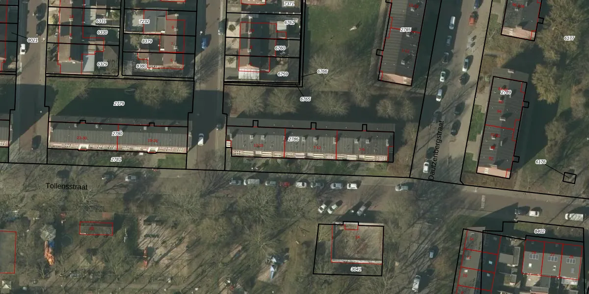 Het perceel waarop Tollensstraat 11 staat heeft een oppervlakte van 587 m². Dit is een groot perceel. De perceeloppervlakte wordt geregistreerd door het Kadaster. Gedetailleerde informatie over de maten van dit perceel kunt u vinden in het rapport Kadastrale kaart met maatvoering van Tollensstraat 11.
