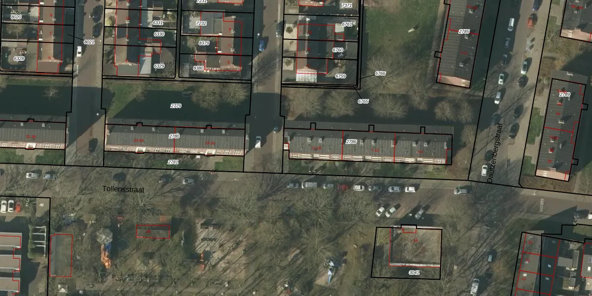 Het perceel waarop Tollensstraat 17 staat heeft een oppervlakte van 587 m². Dit is een groot perceel. De perceeloppervlakte wordt geregistreerd door het Kadaster. Gedetailleerde informatie over de maten van dit perceel kunt u vinden in het rapport Kadastrale kaart met maatvoering van Tollensstraat 17.