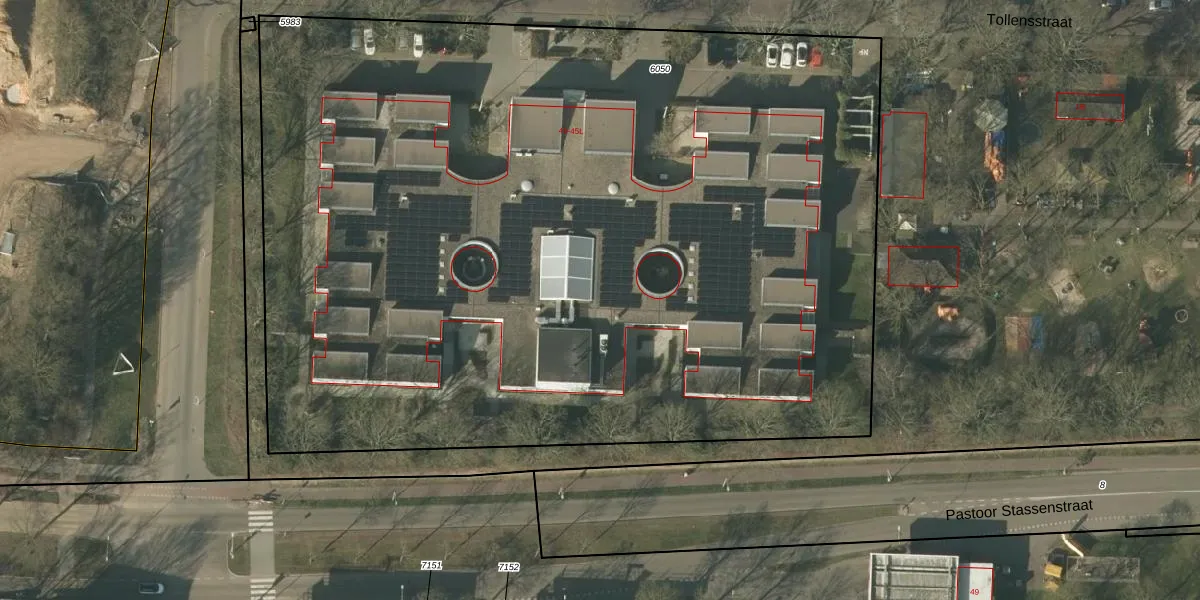 Tollensstraat 45-D is gelegen op kadastraal perceel VLO00M6050. Deze kadastrale aanduiding is uniek en wordt gebruikt door het Kadaster om eigendomsrechten en andere zakelijke rechten vast te leggen. Het perceel maakt onderdeel uit van de kadastrale gemeente Venlo.