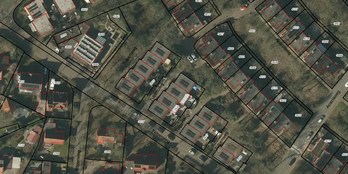 Tulpenweg 15 is gelegen op kadastraal perceel VLO00F2616. Deze kadastrale aanduiding is uniek en wordt gebruikt door het Kadaster om eigendomsrechten en andere zakelijke rechten vast te leggen. Het perceel maakt onderdeel uit van de kadastrale gemeente Venlo.