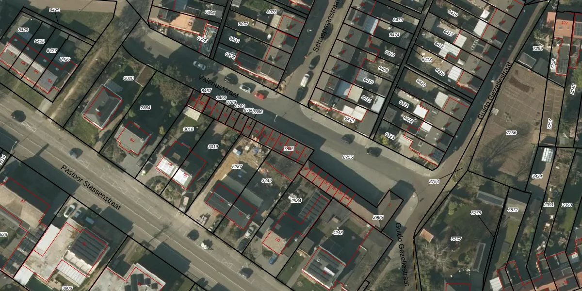 Valeriusstraat 5-B is gelegen op kadastraal perceel VLO00M7885. Deze kadastrale aanduiding is uniek en wordt gebruikt door het Kadaster om eigendomsrechten en andere zakelijke rechten vast te leggen. Het perceel maakt onderdeel uit van de kadastrale gemeente Venlo.
