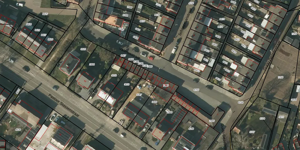 Valeriusstraat 5-F is gelegen op kadastraal perceel VLO00M7885. Deze kadastrale aanduiding is uniek en wordt gebruikt door het Kadaster om eigendomsrechten en andere zakelijke rechten vast te leggen. Het perceel maakt onderdeel uit van de kadastrale gemeente Venlo.