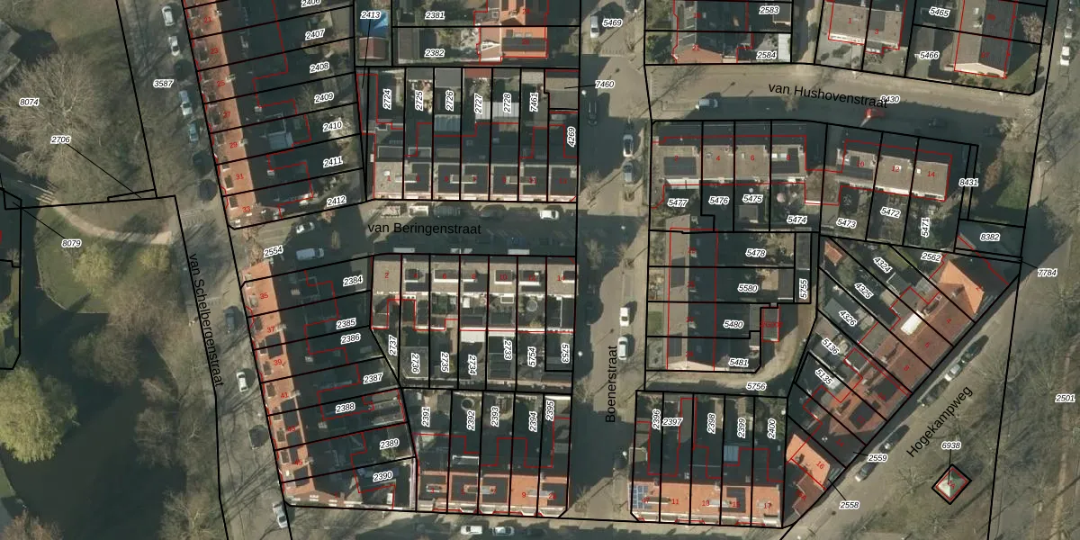 van Beringenstraat 12 is gelegen op kadastraal perceel VLO00D5754. Deze kadastrale aanduiding is uniek en wordt gebruikt door het Kadaster om eigendomsrechten en andere zakelijke rechten vast te leggen. Het perceel maakt onderdeel uit van de kadastrale gemeente Venlo.