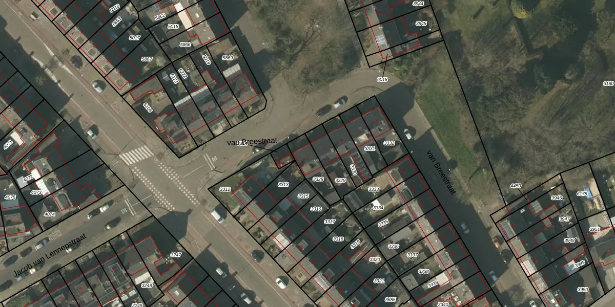 Gebruik de zoekbalk of klik op een perceel voor informatie over de adressen binnen dit perceel.
