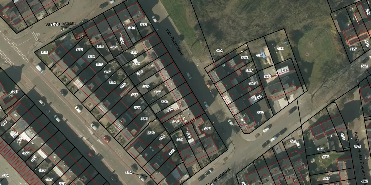 Gebruik de zoekbalk of klik op een perceel voor informatie over de adressen binnen dit perceel.