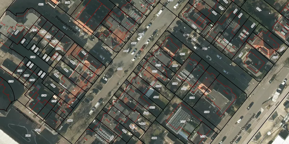 Gebruik de zoekbalk of klik op een perceel voor informatie over de adressen binnen dit perceel.