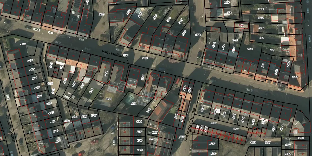 Het perceel waarop van Haeffstraat 31 staat heeft een oppervlakte van 388 m². Dit is een groot perceel. De perceeloppervlakte wordt geregistreerd door het Kadaster. Gedetailleerde informatie over de maten van dit perceel kunt u vinden in het rapport Kadastrale kaart met maatvoering van van Haeffstraat 31.