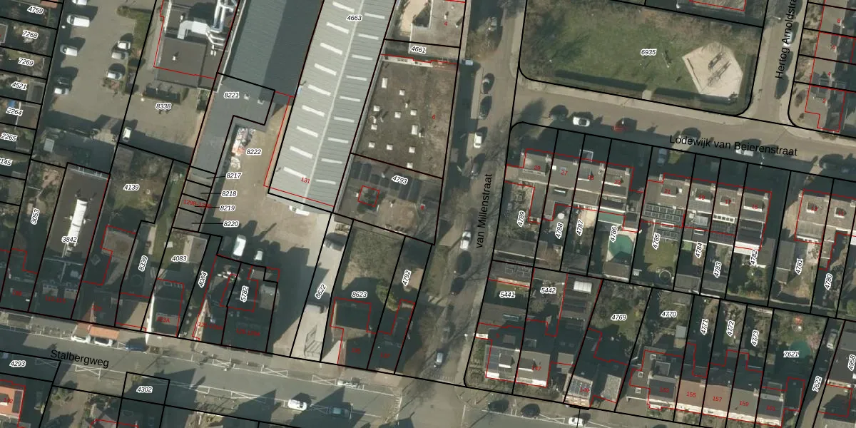 van Millenstraat 8 is gelegen op kadastraal perceel VLO00D4793. Deze kadastrale aanduiding is uniek en wordt gebruikt door het Kadaster om eigendomsrechten en andere zakelijke rechten vast te leggen. Het perceel maakt onderdeel uit van de kadastrale gemeente Venlo.