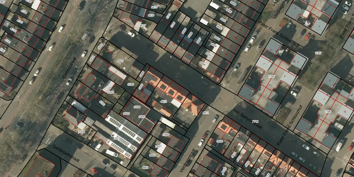 van Speyckstraat 25 is gelegen op kadastraal perceel VLO00H4872. Deze kadastrale aanduiding is uniek en wordt gebruikt door het Kadaster om eigendomsrechten en andere zakelijke rechten vast te leggen. Het perceel maakt onderdeel uit van de kadastrale gemeente Venlo.