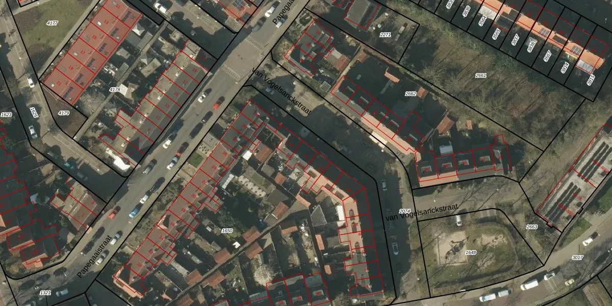 Het perceel waarop van Vogelsanckstraat 28 staat heeft een oppervlakte van 5300 m². Dit is een zeer groot perceel. De perceeloppervlakte wordt geregistreerd door het Kadaster. Gedetailleerde informatie over de maten van dit perceel kunt u vinden in het rapport Kadastrale kaart met maatvoering van van Vogelsanckstraat 28.