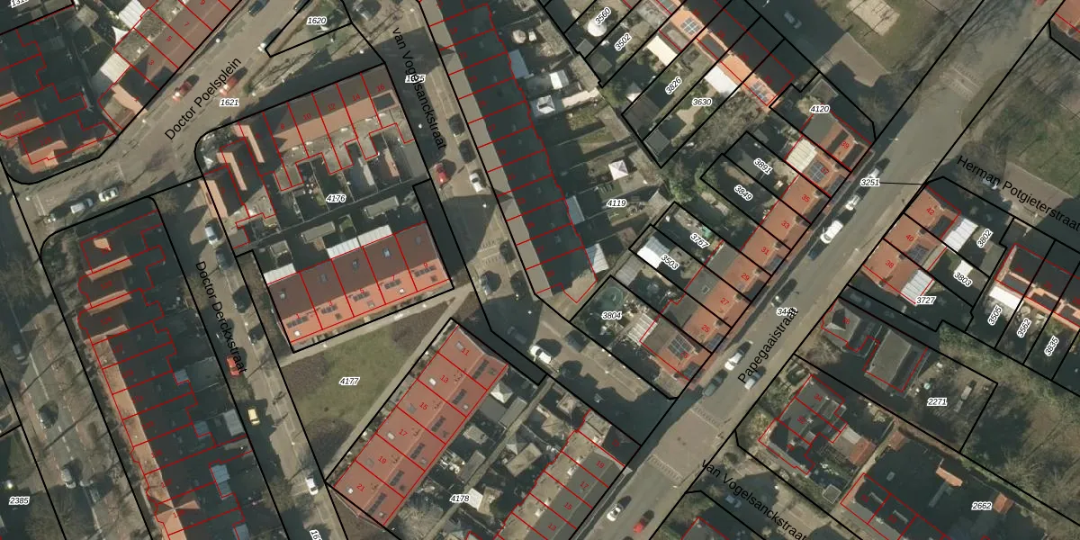 Het perceel waarop van Vogelsanckstraat 39 staat heeft een oppervlakte van 2851 m². Dit is een zeer groot perceel. De perceeloppervlakte wordt geregistreerd door het Kadaster. Gedetailleerde informatie over de maten van dit perceel kunt u vinden in het rapport Kadastrale kaart met maatvoering van van Vogelsanckstraat 39.