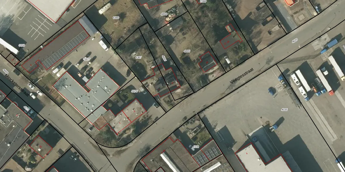 Veegtesstraat 9 is gelegen op kadastraal perceel VLO00A4445. Deze kadastrale aanduiding is uniek en wordt gebruikt door het Kadaster om eigendomsrechten en andere zakelijke rechten vast te leggen. Het perceel maakt onderdeel uit van de kadastrale gemeente Venlo.