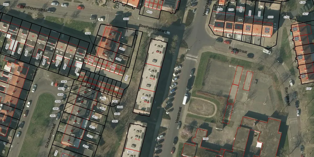 Het perceel waarop Veestraat 63 staat heeft een oppervlakte van 535 m². Dit is een groot perceel. De perceeloppervlakte wordt geregistreerd door het Kadaster. Gedetailleerde informatie over de maten van dit perceel kunt u vinden in het rapport Kadastrale kaart met maatvoering van Veestraat 63.