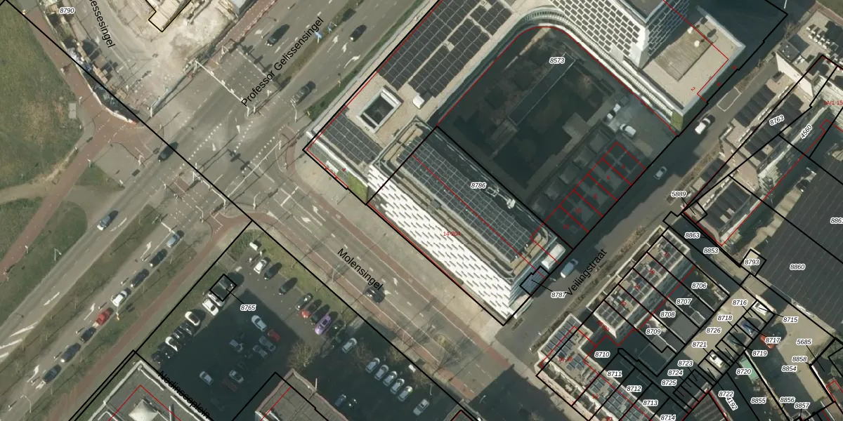 Het perceel waarop Veilingstraat 150 staat heeft een oppervlakte van 1077 m². Dit is een zeer groot perceel. De perceeloppervlakte wordt geregistreerd door het Kadaster. Gedetailleerde informatie over de maten van dit perceel kunt u vinden in het rapport Kadastrale kaart met maatvoering van Veilingstraat 150.