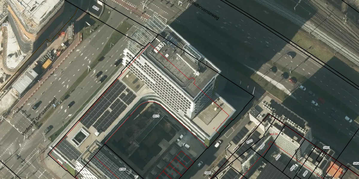 Het perceel waarop Veilingstraat 2-A staat heeft een oppervlakte van 4985 m². Dit is een zeer groot perceel. De perceeloppervlakte wordt geregistreerd door het Kadaster. Gedetailleerde informatie over de maten van dit perceel kunt u vinden in het rapport Kadastrale kaart met maatvoering van Veilingstraat 2-A.