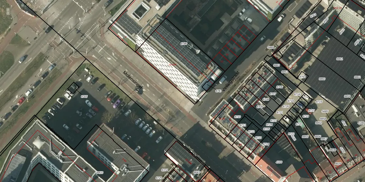 Het perceel waarop Veilingstraat 22 staat heeft een oppervlakte van 1077 m². Dit is een zeer groot perceel. De perceeloppervlakte wordt geregistreerd door het Kadaster. Gedetailleerde informatie over de maten van dit perceel kunt u vinden in het rapport Kadastrale kaart met maatvoering van Veilingstraat 22.