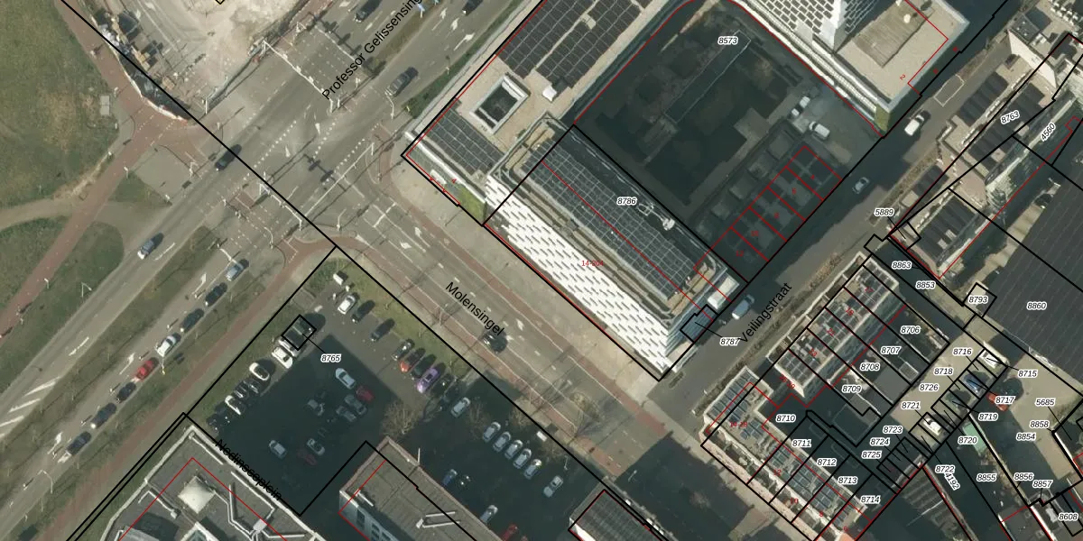 Het perceel waarop Veilingstraat 32 staat heeft een oppervlakte van 1077 m². Dit is een zeer groot perceel. De perceeloppervlakte wordt geregistreerd door het Kadaster. Gedetailleerde informatie over de maten van dit perceel kunt u vinden in het rapport Kadastrale kaart met maatvoering van Veilingstraat 32.