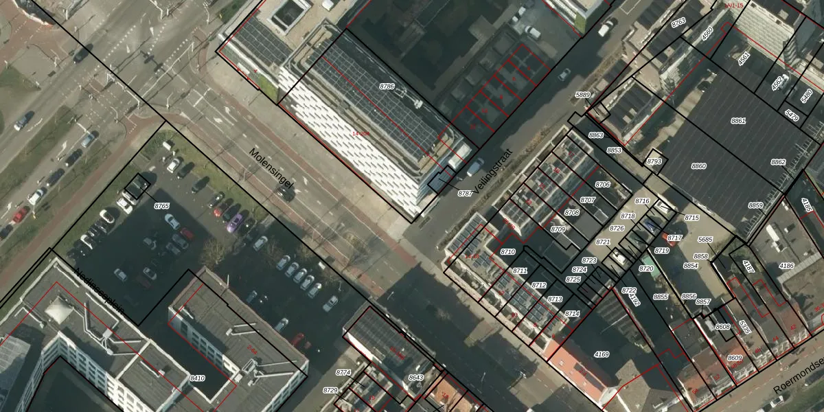 Het perceel waarop het adres ligt is VLO00-H-8786. De afkorting 'VLO00' staat voor kadastrale gemeente Venlo. Het perceel is kleiner dan gemiddeld in Venlo. Het perceel is 1077 m² groot, terwijl het gemiddelde ligt op 1969,68 m². De grootste perceeloppervlakte in de kadastrale gemeente is 82,6 ha. De kleinste oppervlakte bedraagt 0 m². Op het perceel zijn 96 adressen aanwezig. De huidige grenzen van het perceel zijn digitaal in de Basisregistratie Kadaster (BRK) geregistreerd op 03-06-2024.