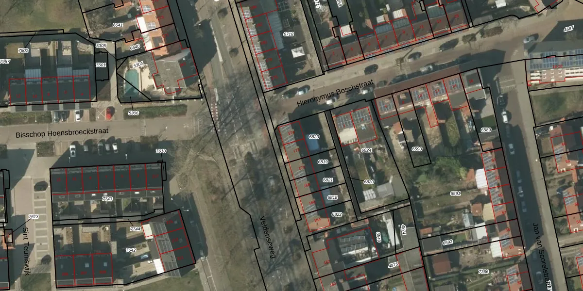 Veldenseweg 172 is gelegen op kadastraal perceel VLO00A6823. Deze kadastrale aanduiding is uniek en wordt gebruikt door het Kadaster om eigendomsrechten en andere zakelijke rechten vast te leggen. Het perceel maakt onderdeel uit van de kadastrale gemeente Venlo.
