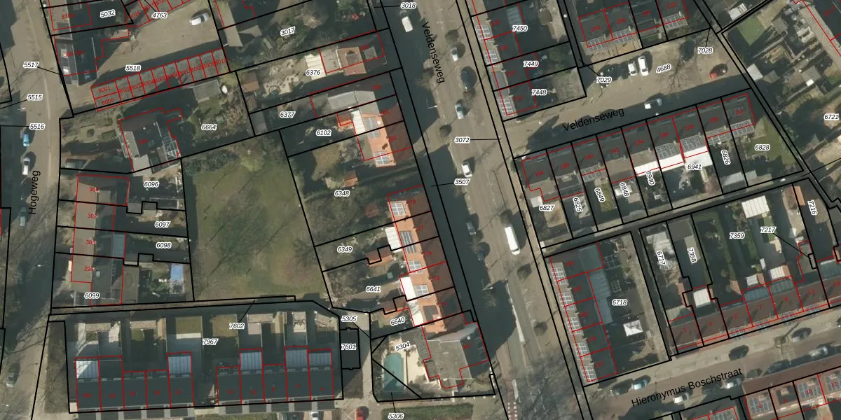 Het perceel waarop Veldenseweg 279 staat heeft een oppervlakte van 647 m². Dit is een groot perceel. De perceeloppervlakte wordt geregistreerd door het Kadaster. Gedetailleerde informatie over de maten van dit perceel kunt u vinden in het rapport Kadastrale kaart met maatvoering van Veldenseweg 279.