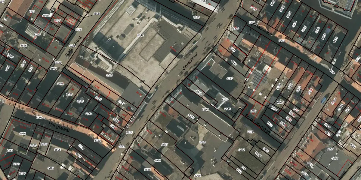 Vleesstraat 47 is gelegen op kadastraal perceel VLO00I5507. Deze kadastrale aanduiding is uniek en wordt gebruikt door het Kadaster om eigendomsrechten en andere zakelijke rechten vast te leggen. Het perceel maakt onderdeel uit van de kadastrale gemeente Venlo.