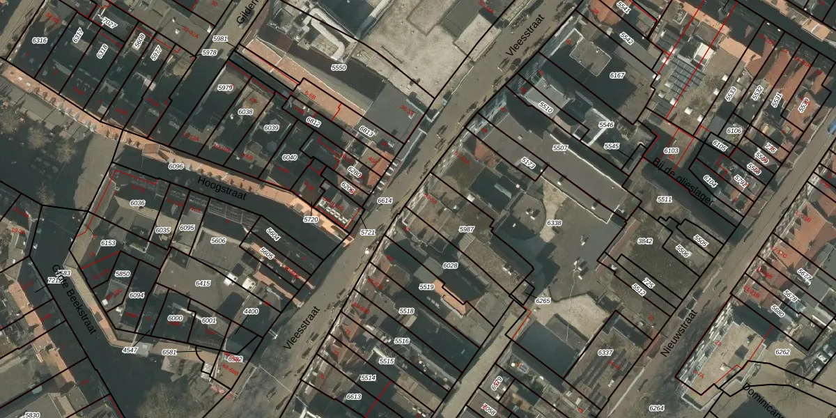 Vleesstraat 59 is gelegen op kadastraal perceel VLO00I5987. Deze kadastrale aanduiding is uniek en wordt gebruikt door het Kadaster om eigendomsrechten en andere zakelijke rechten vast te leggen. Het perceel maakt onderdeel uit van de kadastrale gemeente Venlo.