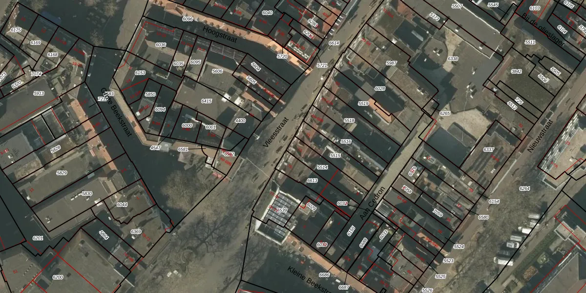 Het perceel waarop Vleesstraat 73 staat heeft een oppervlakte van 182 m². Dit is een middelgroot perceel. De perceeloppervlakte wordt geregistreerd door het Kadaster. Gedetailleerde informatie over de maten van dit perceel kunt u vinden in het rapport Kadastrale kaart met maatvoering van Vleesstraat 73.