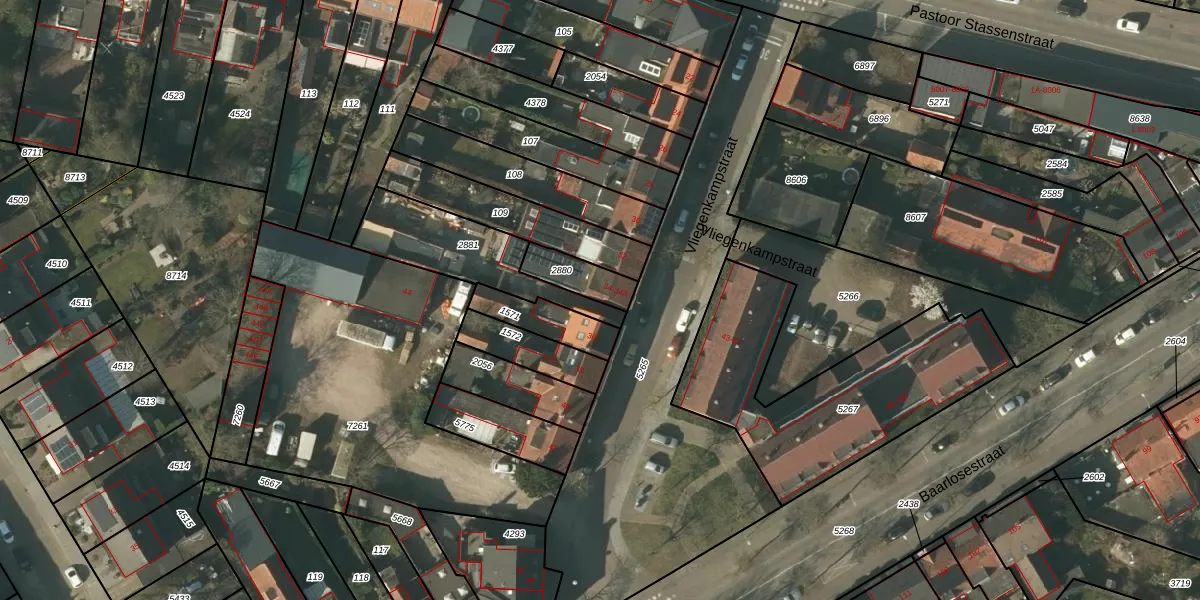 Vliegenkampstraat 34-A is gelegen op kadastraal perceel VLO00M2880. Deze kadastrale aanduiding is uniek en wordt gebruikt door het Kadaster om eigendomsrechten en andere zakelijke rechten vast te leggen. Het perceel maakt onderdeel uit van de kadastrale gemeente Venlo.