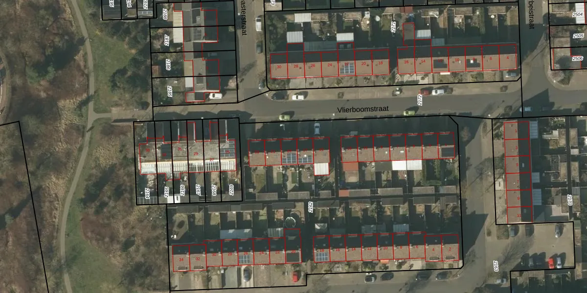 Vlierboomstraat 19 is gelegen op kadastraal perceel VLO00N2162. Deze kadastrale aanduiding is uniek en wordt gebruikt door het Kadaster om eigendomsrechten en andere zakelijke rechten vast te leggen. Het perceel maakt onderdeel uit van de kadastrale gemeente Venlo.