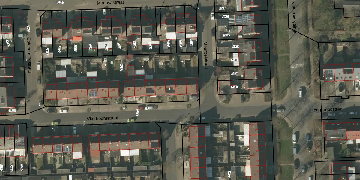 Vlierboomstraat 6 is gelegen op kadastraal perceel VLO00N2171. Deze kadastrale aanduiding is uniek en wordt gebruikt door het Kadaster om eigendomsrechten en andere zakelijke rechten vast te leggen. Het perceel maakt onderdeel uit van de kadastrale gemeente Venlo.