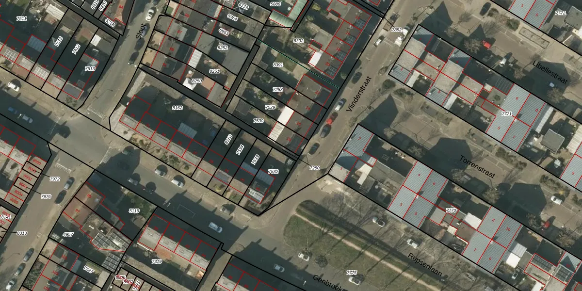Vlinderstraat 28 is gelegen op kadastraal perceel VLO00H7530. Deze kadastrale aanduiding is uniek en wordt gebruikt door het Kadaster om eigendomsrechten en andere zakelijke rechten vast te leggen. Het perceel maakt onderdeel uit van de kadastrale gemeente Venlo.