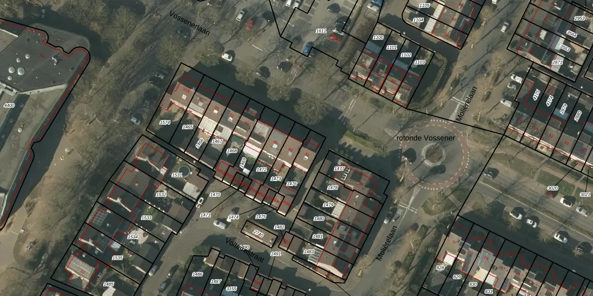 Vossenerlaan 43 is gelegen op kadastraal perceel VLO00N1473. Deze kadastrale aanduiding is uniek en wordt gebruikt door het Kadaster om eigendomsrechten en andere zakelijke rechten vast te leggen. Het perceel maakt onderdeel uit van de kadastrale gemeente Venlo.