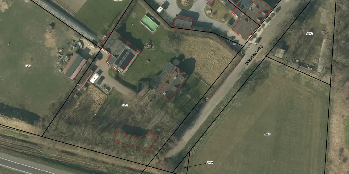 Het perceel waarop Weselseweg 3 staat heeft een oppervlakte van 5310 m². Dit is een zeer groot perceel. De perceeloppervlakte wordt geregistreerd door het Kadaster. Gedetailleerde informatie over de maten van dit perceel kunt u vinden in het rapport Kadastrale kaart met maatvoering van Weselseweg 3.
