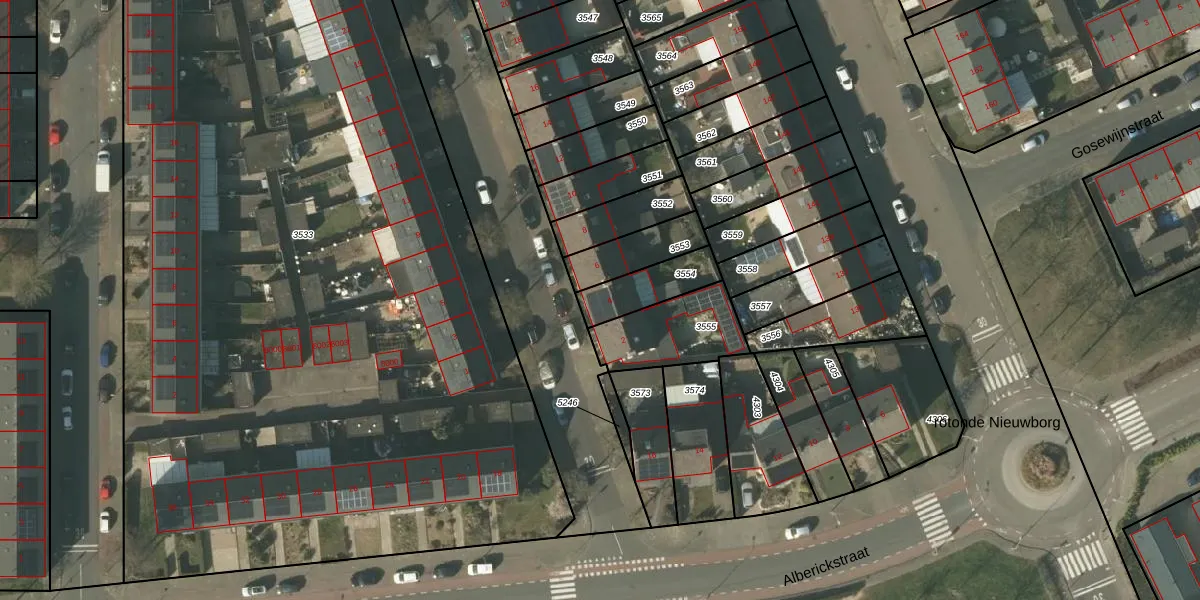 Gebruik de zoekbalk of klik op een perceel voor informatie over de adressen binnen dit perceel.
