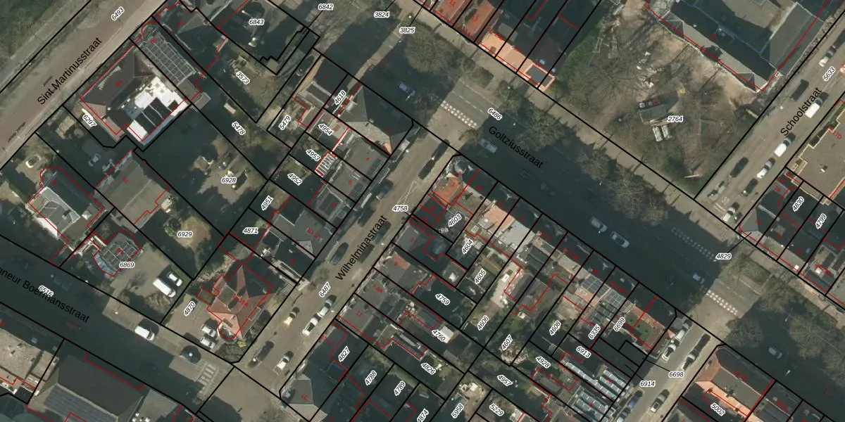 Het perceel waarop Wilhelminastraat 1-B staat heeft een oppervlakte van 217 m². Dit is een middelgroot perceel. De perceeloppervlakte wordt geregistreerd door het Kadaster. Gedetailleerde informatie over de maten van dit perceel kunt u vinden in het rapport Kadastrale kaart met maatvoering van Wilhelminastraat 1-B.