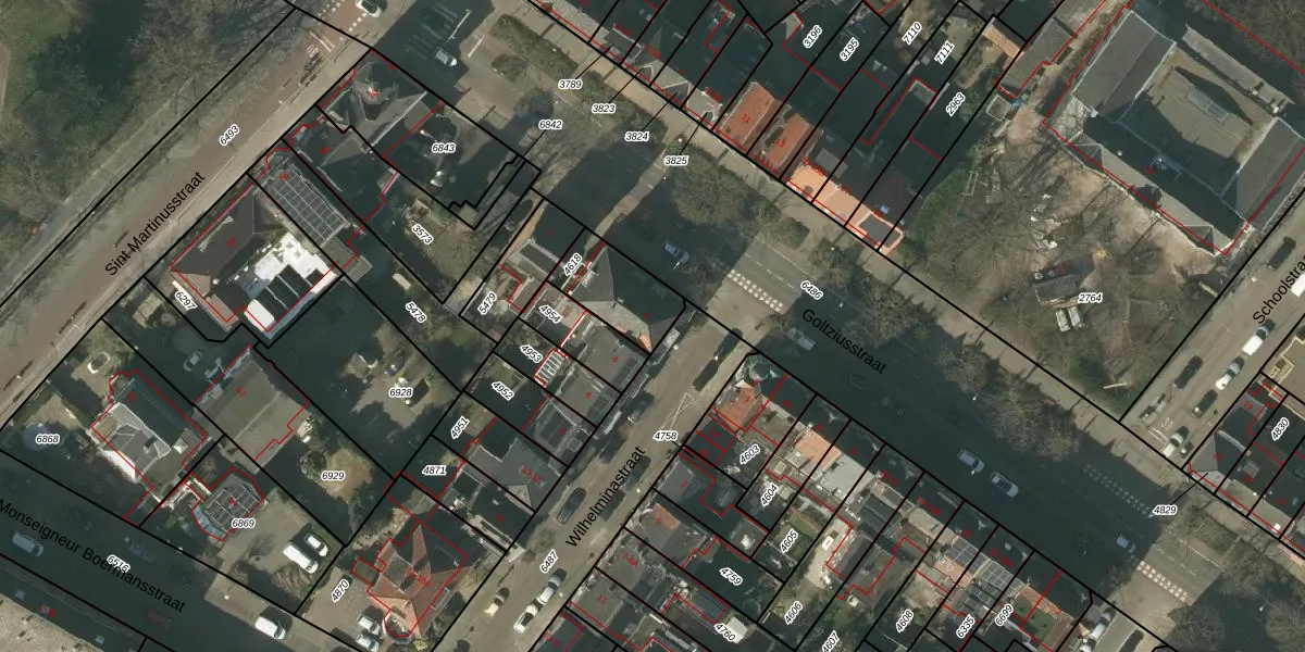 Het perceel waarop Wilhelminastraat 2 staat heeft een oppervlakte van 197 m². Dit is een middelgroot perceel. De perceeloppervlakte wordt geregistreerd door het Kadaster. Gedetailleerde informatie over de maten van dit perceel kunt u vinden in het rapport Kadastrale kaart met maatvoering van Wilhelminastraat 2.