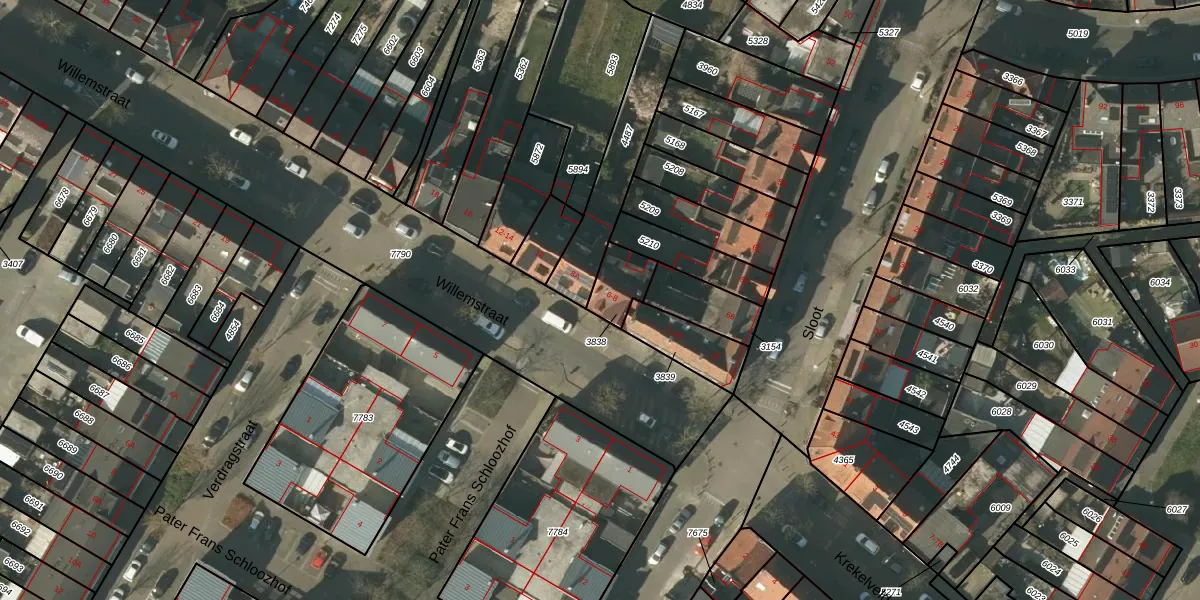 Het perceel waarop Willemstraat 8 staat heeft een oppervlakte van 96 m². Dit is een klein perceel. De perceeloppervlakte wordt geregistreerd door het Kadaster. Gedetailleerde informatie over de maten van dit perceel kunt u vinden in het rapport Kadastrale kaart met maatvoering van Willemstraat 8.