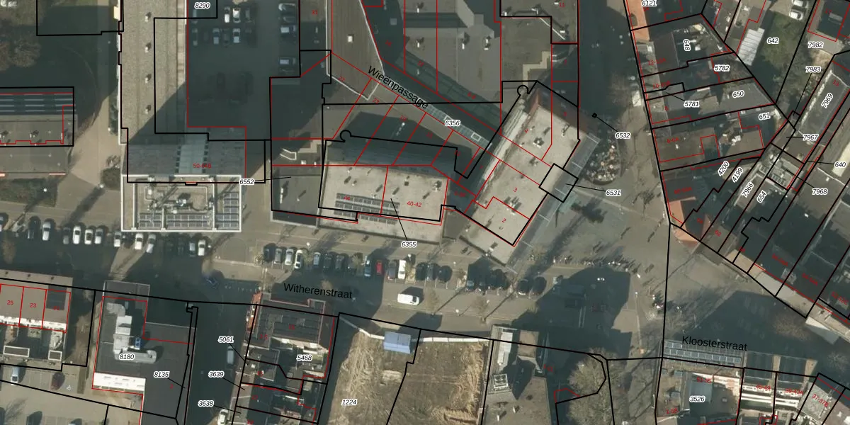 Witherenstraat 40 is gelegen op kadastraal perceel VLO00M6355. Deze kadastrale aanduiding is uniek en wordt gebruikt door het Kadaster om eigendomsrechten en andere zakelijke rechten vast te leggen. Het perceel maakt onderdeel uit van de kadastrale gemeente Venlo.