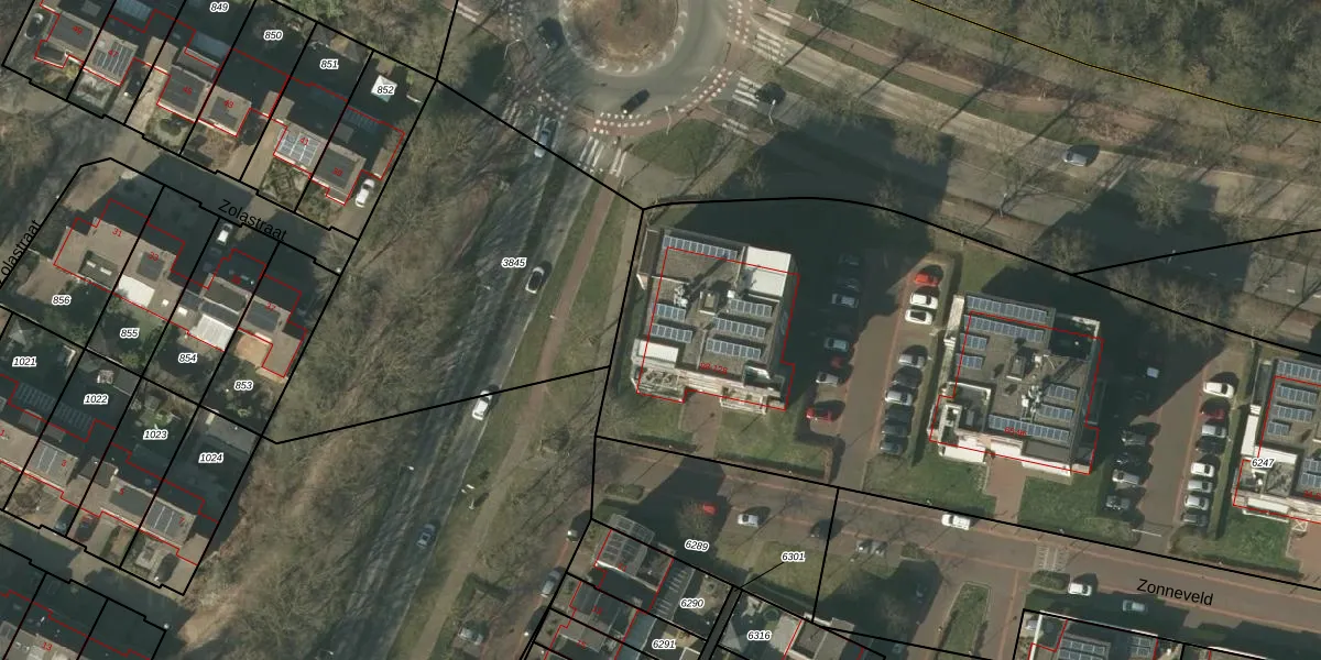 Het perceel waarop Zonneveld 120 staat heeft een oppervlakte van 6615 m². Dit is een zeer groot perceel. De perceeloppervlakte wordt geregistreerd door het Kadaster. Gedetailleerde informatie over de maten van dit perceel kunt u vinden in het rapport Kadastrale kaart met maatvoering van Zonneveld 120.