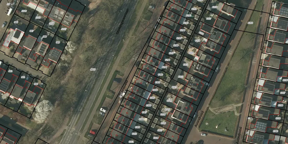 Gebruik de zoekbalk of klik op een perceel voor informatie over de adressen binnen dit perceel.
