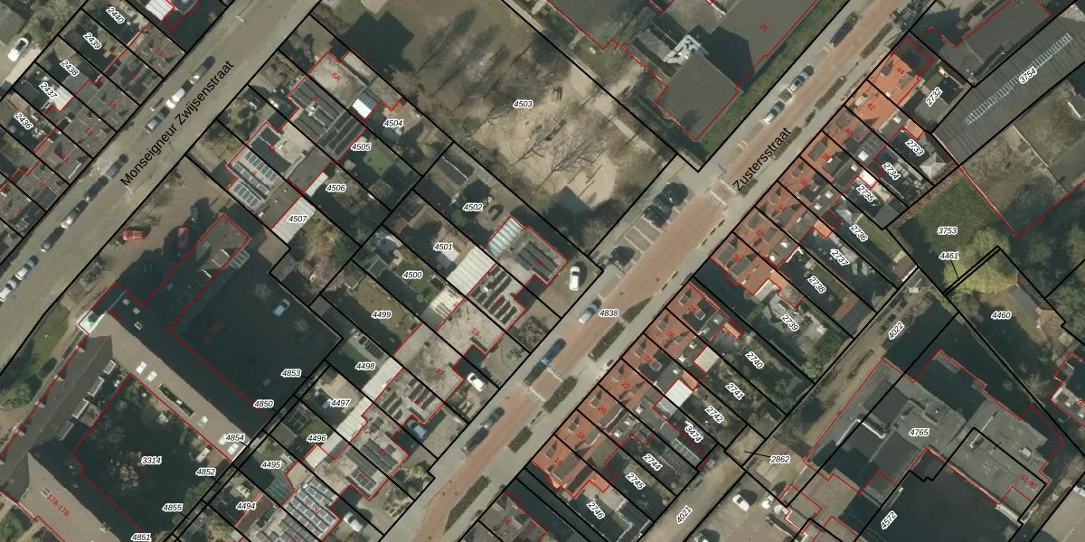 Zustersstraat 23 is gelegen op kadastraal perceel VLO00C4502. Deze kadastrale aanduiding is uniek en wordt gebruikt door het Kadaster om eigendomsrechten en andere zakelijke rechten vast te leggen. Het perceel maakt onderdeel uit van de kadastrale gemeente Venlo.