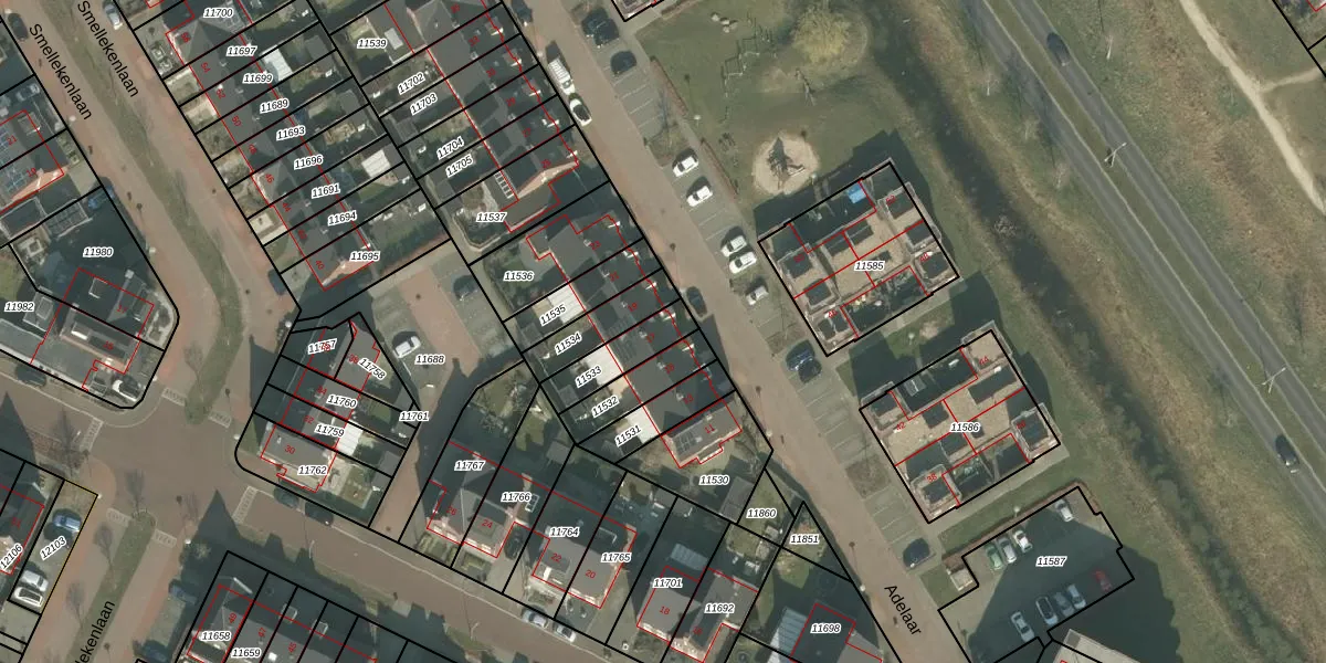Gebruik de zoekbalk of klik op een perceel voor informatie over de adressen binnen dit perceel.